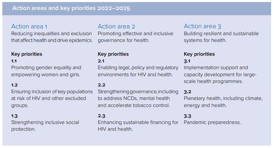 As a co-sponsor of the Joint United Nations Programme on HIV/AIDS (UNAIDS), UNDP supports the implementation of the Global AIDS Strategy 2021-2026 to end the AIDS epidemic as a public health threat by 2030. The strategy’s focus on the critical links between HIV, health, human rights, inequality, poverty and conflict are of particular importance to UNDP. The UNAIDS Division of Labour, updated in 2018, outlines the roles and responsibilities of co-sponsors to leverage comparative advantages and collectively deliver on health and development goals.